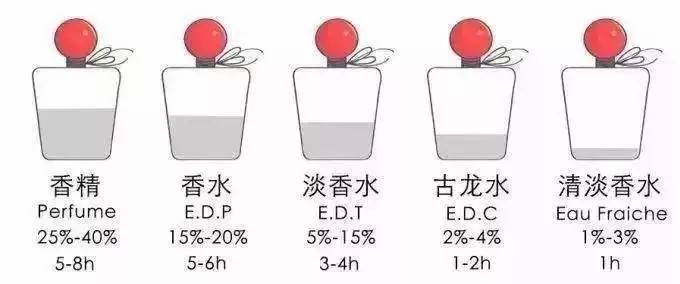 PS:濃度在香水行業(yè)中沒有硬性標準,所以大多數(shù)品牌會按照自己的標準來劃分。例如A品牌的EDP濃度比B品牌的EDT還要低的情況,所以買香水一定要仔細對比之后再購買。