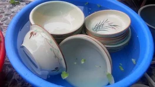 使用方法也簡單,直接用洗碗巾蘸取這些調(diào)制好的水,然后擦拭餐具就可以了,油脂和食物的殘?jiān)S著擦拭就會被擦掉,餐具就可以恢復(fù)干凈和清潔,最后就是用清水沖洗一遍,洗掉微量的泡沫,餐具就可以放在一邊瀝水了。