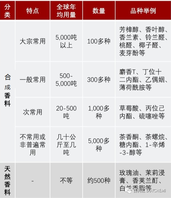 目前世界上香料品種近6000種,大部分年產量在100噸以下。