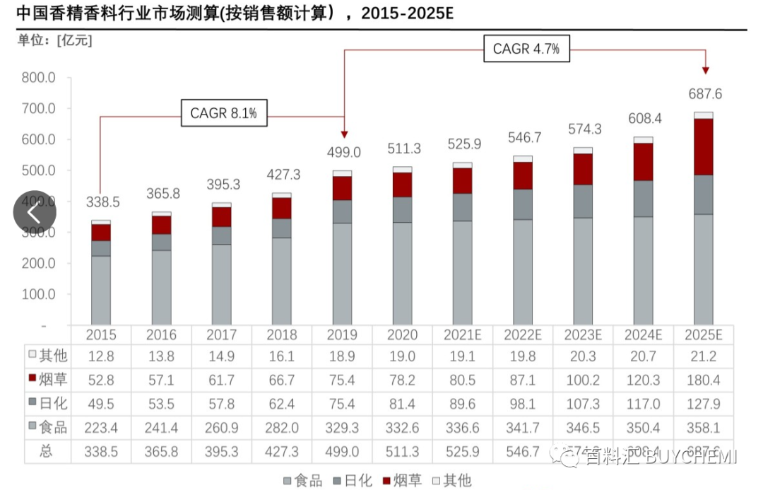 中國香精香料行業(yè)尚處于依靠原材料加工向國外出口階段,煙草行業(yè)受政策和新產品影響較大,有一定的波動性。