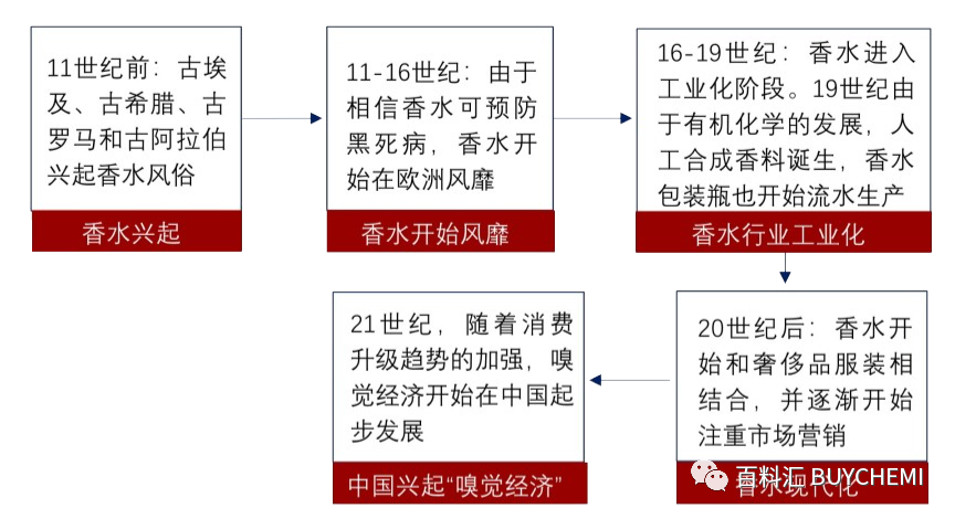 中國(guó)用香歷史(應(yīng)用于祭祀、祈福等)悠久,可追溯至封建時(shí)代,但我國(guó)香氛行業(yè)起步較晚。中國(guó)香水行業(yè)萌芽于1978年,發(fā)展至今可分為兩個(gè)階段: