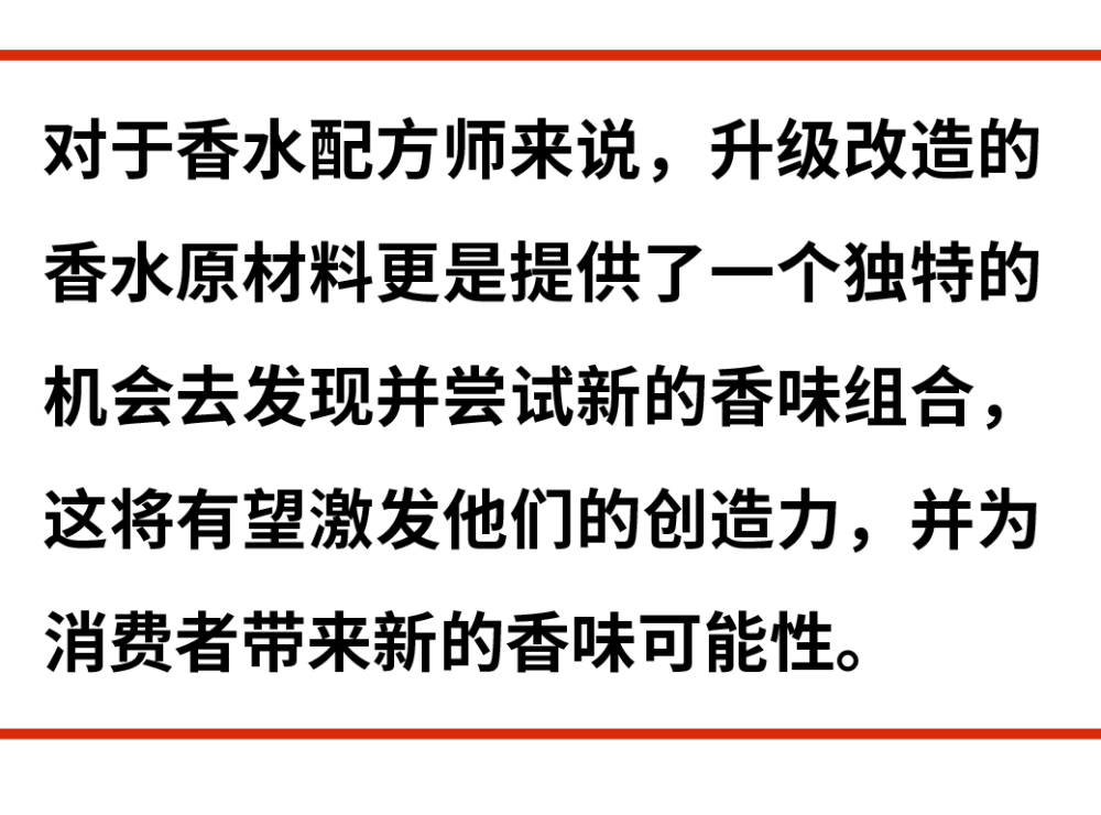 在業(yè)內(nèi)人士看來,對于香水配方師來說,升級改造的香水原材料更是提供了一個(gè)獨(dú)特的機(jī)會去發(fā)現(xiàn)并嘗試新的香味組合,這將有望激發(fā)他們的創(chuàng)造力,并為消費(fèi)者帶來新的香味可能性。