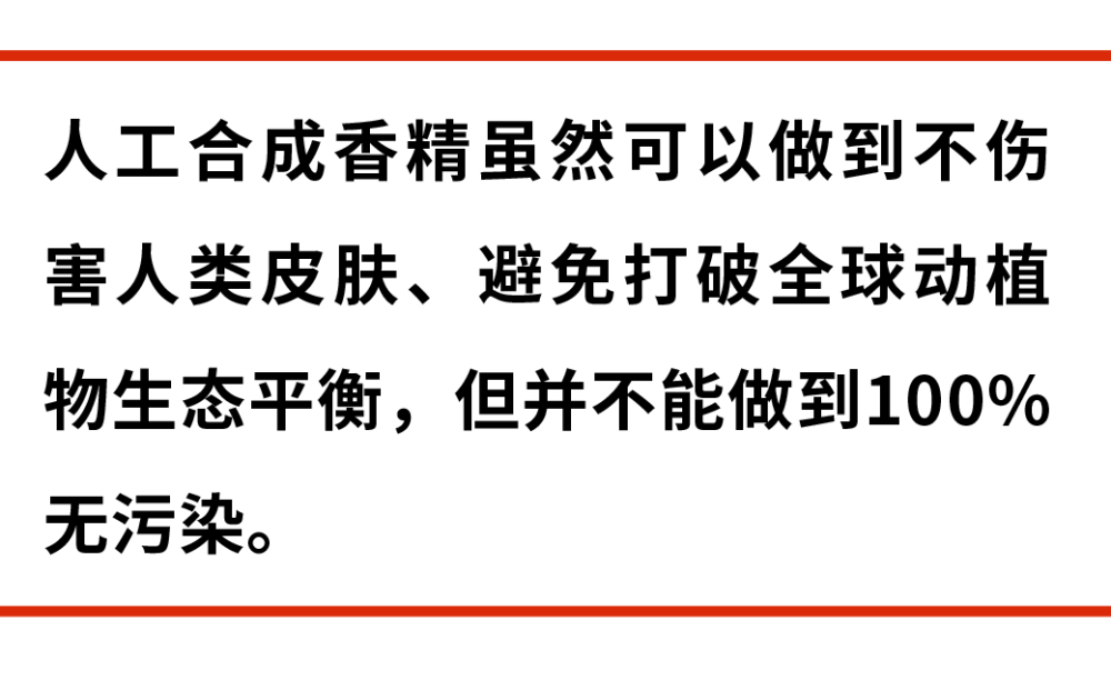 從表面看去,人類探索香水的可持續(xù)發(fā)展路徑已經(jīng)走到了某種分叉口,但事實(shí)上,從化學(xué)實(shí)驗(yàn)室生成的人工合成香精雖然可以做到不傷害人類皮膚、避免打破全球動植物生態(tài)平衡,但并不能做到100%無污染。