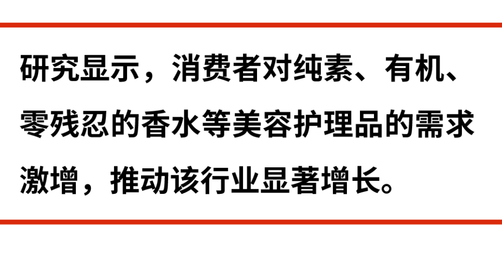 督促升級改造的進(jìn)程離不開消費(fèi)者的需求。據(jù)市場研究公司Frost & Sullivan的最新調(diào)查報(bào)告Growth Opportunities for Natural Fragrances inPersonal Care顯示,消費(fèi)者對純素、有機(jī)、零殘忍的香水等美容護(hù)理品的需求激增,推動該行業(yè)顯著增長。