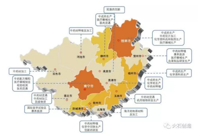 圖1:廣西中醫(yī)藥產(chǎn)業(yè)分布圖(來源:火石創(chuàng)造)