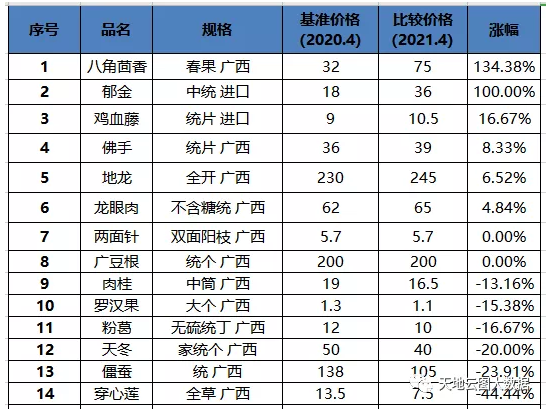 二、廣西核心中藥材漲跌情況