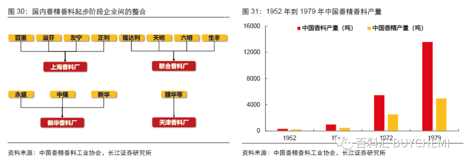 到50 年代末,我國合成香精香料品種已達百種,其中包括洋茉莉醛、二甲苯麝香、合成檀香、香蘭素等產(chǎn)品。到1979 年,我國香料產(chǎn)量已達1.4 萬噸,較1952 年建國初期有大幅提升。此階段我國合成香料工業(yè)由無到有,產(chǎn)量逐步增加,誕生了天津香料廠、上海香料廠和新華香料廠等初具規(guī)模的企業(yè)。