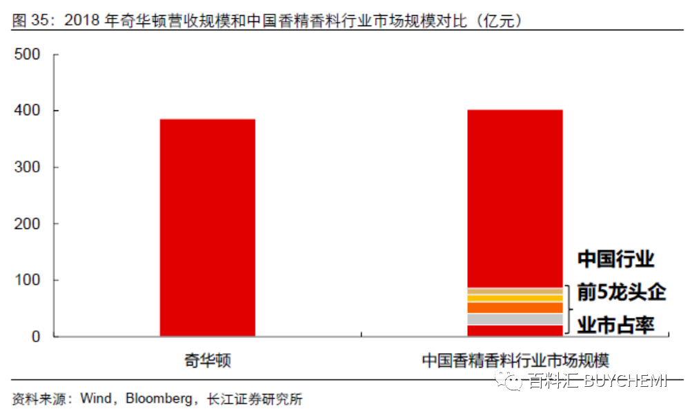 行業(yè)供給集中度較低,龍頭具備較大提升空間。相較于國外,我國香精香料行業(yè)集中度較低。2018 年,我國香精香料行業(yè)CR5 僅為21.2%(采用營業(yè)收入前五的公司市場占比估算,不考慮外資公司在中國市場份額),與國外寡頭壟斷的格局相比集中度仍較低。