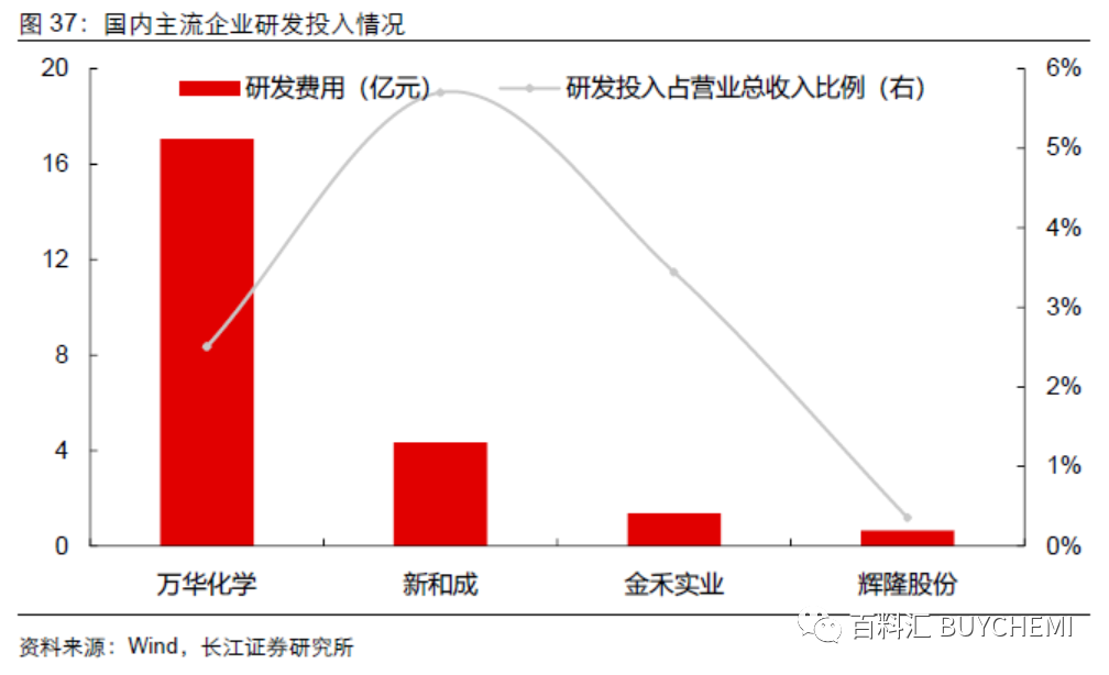 注重研發(fā)投入,布局內(nèi)生增長動力。目前,萬華化學(xué)、新和成和金禾實業(yè)在研發(fā)端布局較高,2019 年新和成、萬華化學(xué)和金禾實業(yè)研發(fā)投入占營業(yè)總收入比例達到5.7%、2.5%和3.4%。中國合成香料龍頭企業(yè)在研發(fā)端投入增加,逐步拓展新的產(chǎn)品和合成工藝,打造多元一體化供應(yīng)能力,形成企業(yè)核心競爭力。