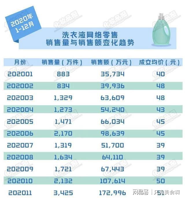 維恩咨詢數(shù)據(jù)顯示,2020年全年,國內(nèi)洗衣液線上(包括天貓、京東、聚美、國美、當(dāng)當(dāng)、蘇寧、亞馬遜、唯品會平臺)總銷售額為88.6億元,同比2019年增長19%,銷量1.98億件,成交均價45元,高于2020年全網(wǎng)線上彩妝成交均價43.9元(歐特歐數(shù)據(jù))。