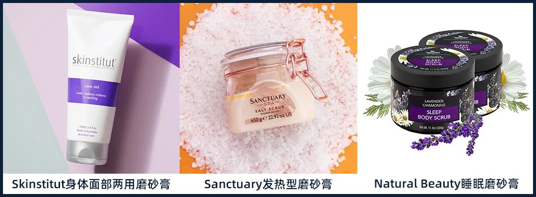 近幾年,磨砂膏的種類(lèi)也越來(lái)越豐富,其發(fā)展方向越來(lái)越廣闊。倫敦SPA護(hù)理品牌Sanctuary推出了發(fā)熱型的磨砂膏;澳大利亞護(hù)膚品牌 Skinstitut的磨砂膏可適用于身體及面部;還有加拿大香薰護(hù)膚品牌Natural Beauty的薰衣草洋甘菊睡眠身體磨砂膏,結(jié)合植物精油成分和香型,發(fā)揮助眠的效果。