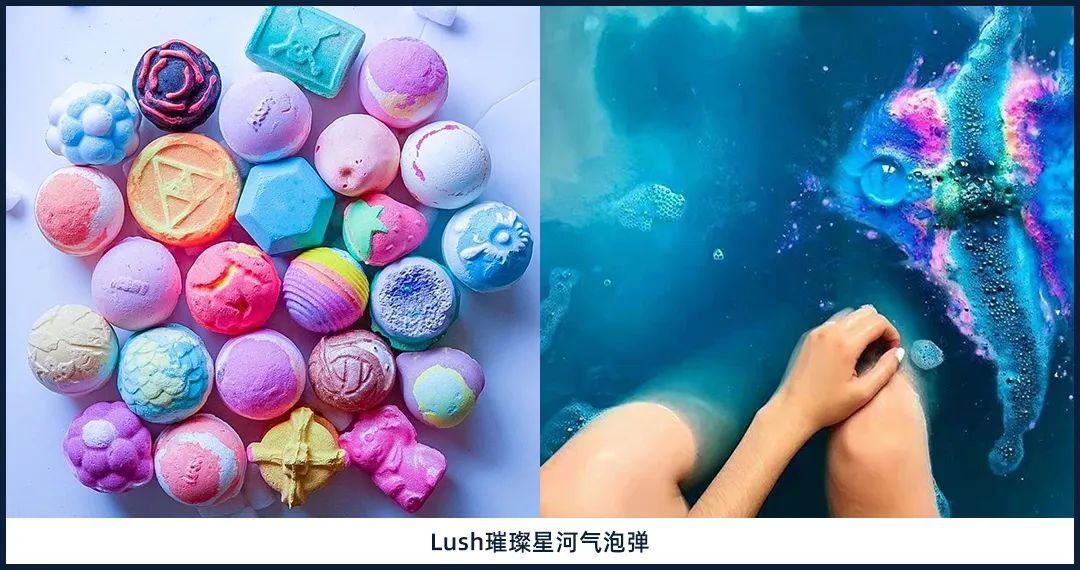 起初,浴鹽球以入水即“爆炸”的方式出現(xiàn),超高的顏值吸引了不少消費(fèi)者的興趣。比如,英國(guó)洗護(hù)品牌Lush的“沐浴炸彈”,目前已有41種不同設(shè)計(jì)的產(chǎn)品,而且時(shí)常會(huì)上線(xiàn)萬(wàn)圣節(jié)、圣誕節(jié)的主題新品。其璀璨星河氣泡彈因夢(mèng)幻的使用效果出圈,不過(guò)價(jià)格較高,在國(guó)內(nèi)售價(jià)85元/200g。