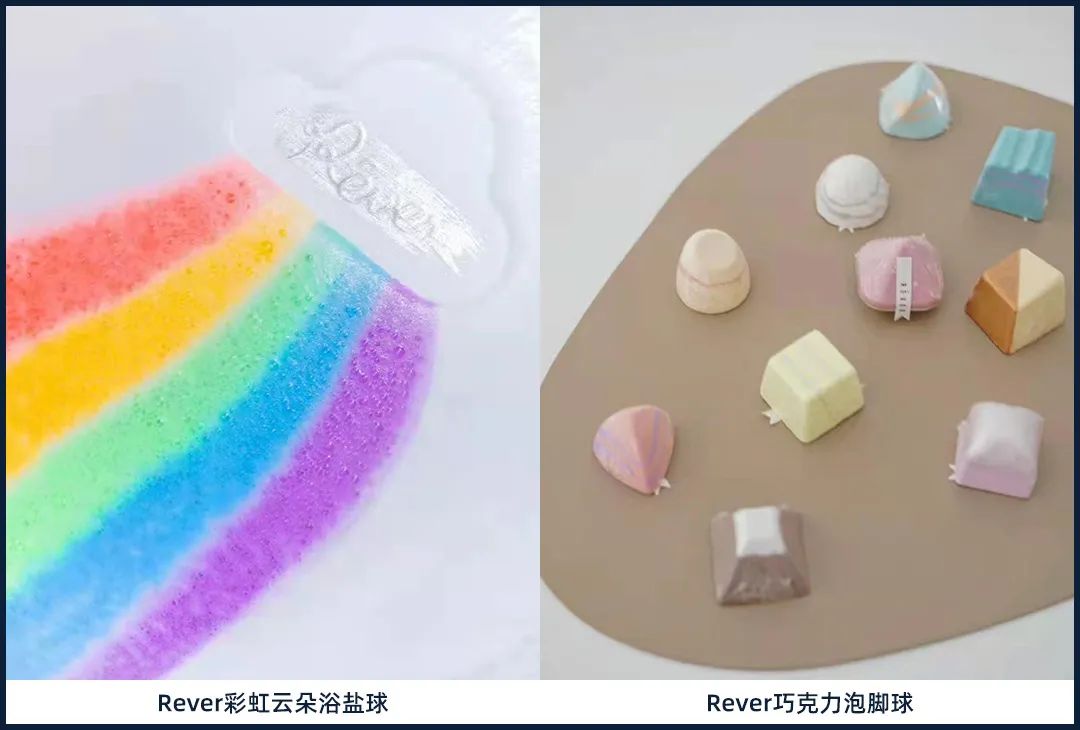 同時(shí),該品牌受到浴鹽球的啟示,衍生出專(zhuān)門(mén)用于足浴的泡腳球。Rever的巧克力泡腳球,外觀(guān)上類(lèi)似于甜品和巧克力,其中添加多種植物精油成分,售價(jià)約159元/227g。在部分消費(fèi)者看來(lái),泡腳球的實(shí)用場(chǎng)景更廣、性?xún)r(jià)比更高,因此這款產(chǎn)品也獲得了比浴鹽球更高的銷(xiāo)量成績(jī)。