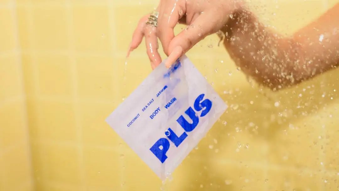 為了減少塑料包裝,有的品牌更是直接采用了“無(wú)瓶”模式。比如美國(guó)的無(wú)水美容品牌Plus,在今年4月份推出“無(wú)瓶”沐浴露,產(chǎn)品為100%可降解,沐浴后會(huì)被水完全沖走。由于沐浴露為小體積的固態(tài)片狀,有助于解決傳統(tǒng)沐浴露的水運(yùn)輸和一次性塑料包裝問(wèn)題。