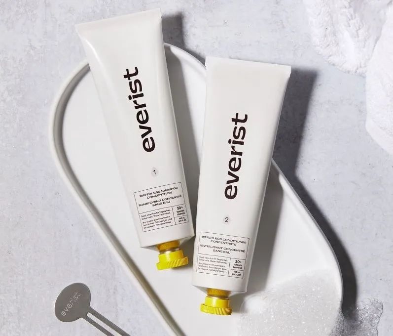 除了大集團(tuán)之外,一些小眾品牌同樣基于“無(wú)水”理念進(jìn)行創(chuàng)新。比如,加拿大的初創(chuàng)品牌Everist于今年10月份推出了無(wú)水沐浴露濃縮液,這是繼該品牌在無(wú)水濃縮洗發(fā)水和護(hù)發(fā)素之后的一大新品。