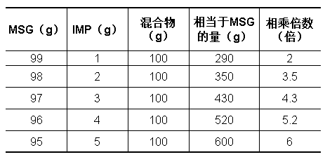可以達(dá)到/鮮味增強(qiáng)作用,用量減少。當(dāng)與MSG合用時,肌苷酸鈉的鮮味約為MSG的40倍,鳥苷酸鈉的鮮味約為160倍。