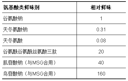 氨基酸類:L-谷氨酸鈉(MSG、味精)、甘氨酸、L-丙氨酸、天冬氨酸