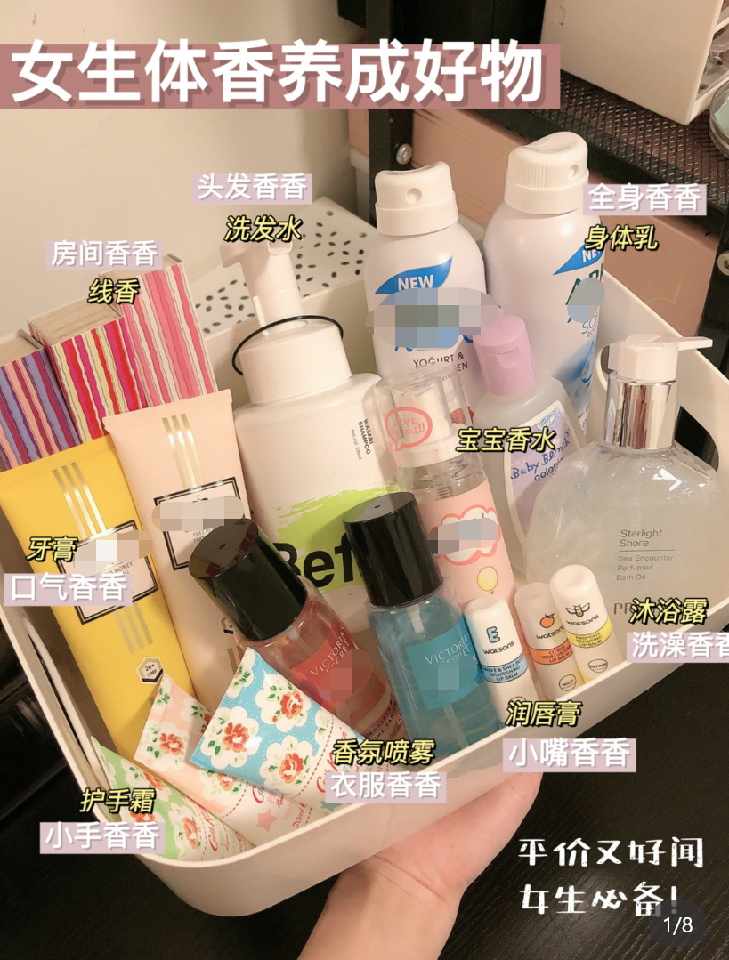 腌肉體必備物品,則早已從最基礎的香水、香膏,衍生到了一切往身上抹的日用品: