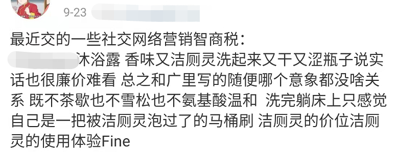 幸運的是產(chǎn)品不貴,也就潔廁靈的價格;悲催的是產(chǎn)品不貴,覺得自己更像真用了一瓶潔廁靈洗澡。
