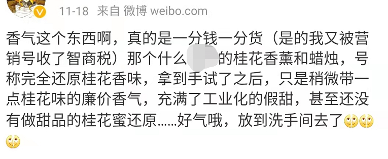 今年國內(nèi)香薰界流行的桂花香,被網(wǎng)友們譽為翻車最多的一種香。